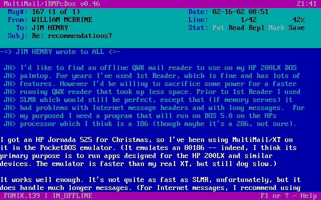 MultiMail display looks something like this (contributed by Alan Zisman):